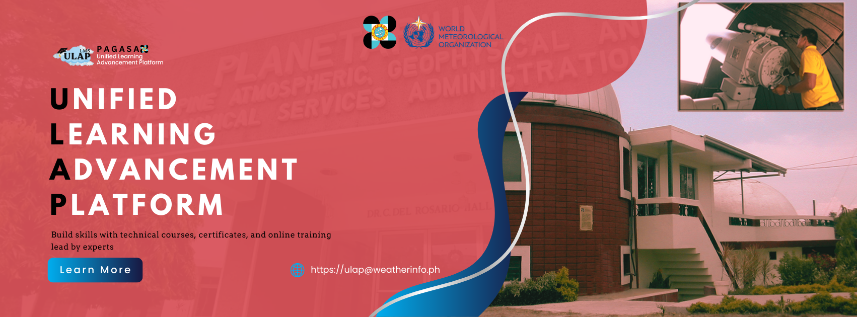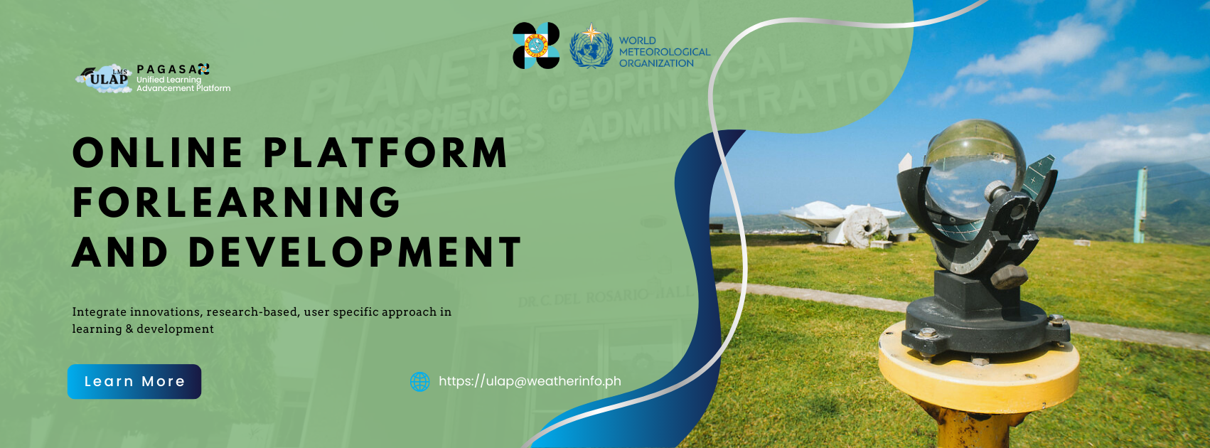 The PAGASA Unified Learning Advancement Platform (ULAP) is a comprehensive tool to utilize distance learning in the assessment, design, development, implementation, and evaluation of meteorological, climatological, and hydrological training programs (NOTE: will be expanded to include non-technical training programs). The online learning management system will integrate innovations afforded by educational technology to create a research-based, user-specific approach to learning and development. All training materials, specifically designed to produce capable technical personnel, will be made available through an online platform in the operating system (OS)-independent formats. This will ensure that learning and development are delivered in a flexible, scalable, and sustainable manner, regardless of the model or make of mobile devices or computers. Basic meteorological and climatological modules will also be made accessible for information and education campaigns around the Philippines through coordination with PAGASA regional services divisions, and can also be used in the development of learning materials to support weather and climate education in the Philippines.
